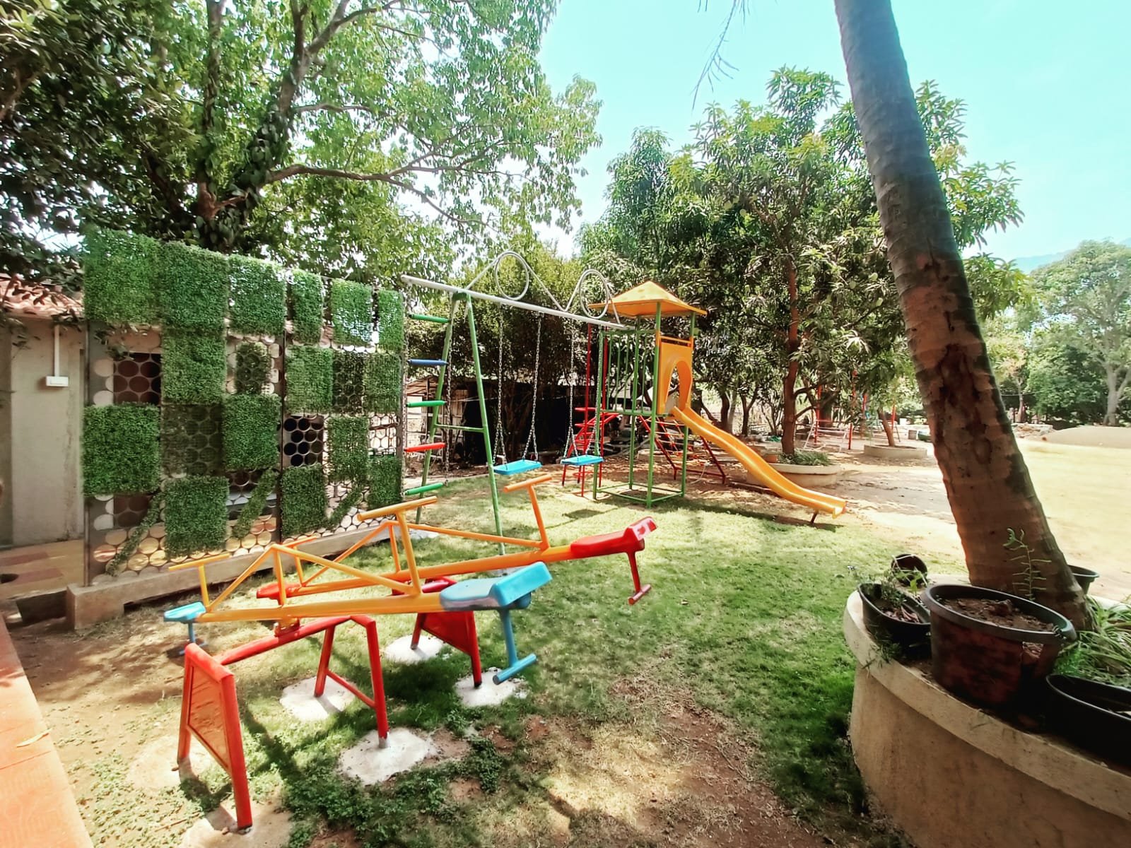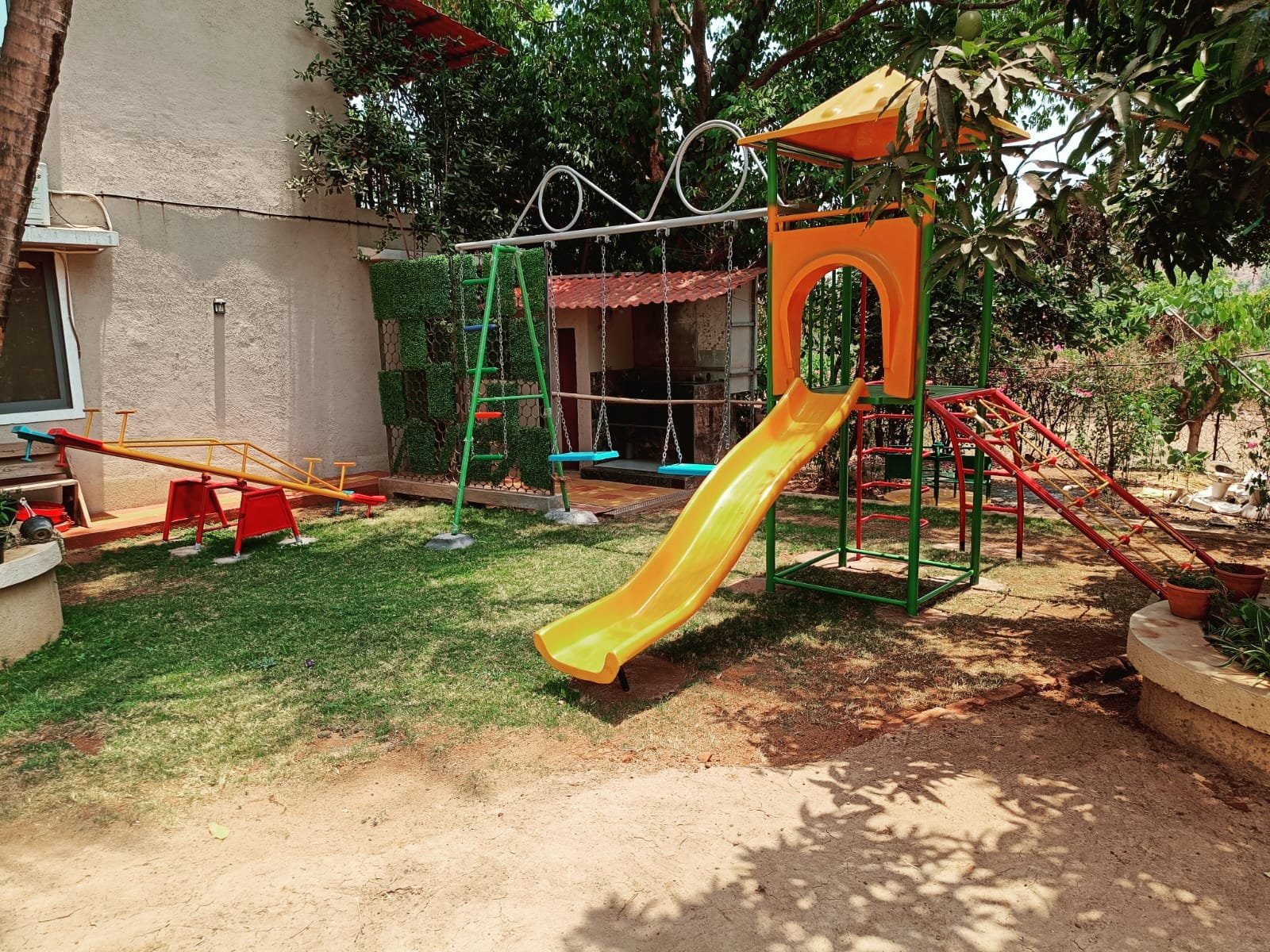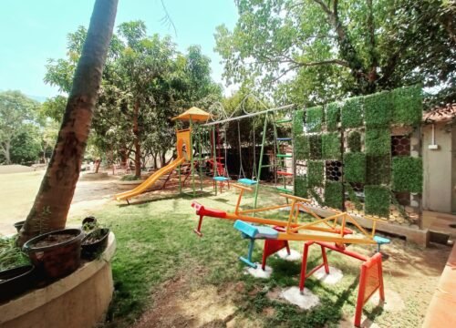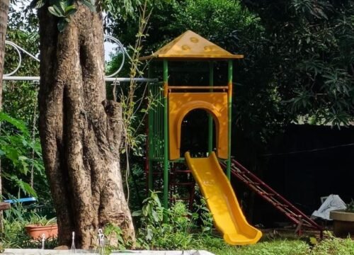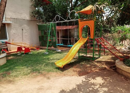 “A fun-filled Children’s Play Area with slides, swings, and rides—perfect for kids to enjoy safe outdoor play amidst nature.”